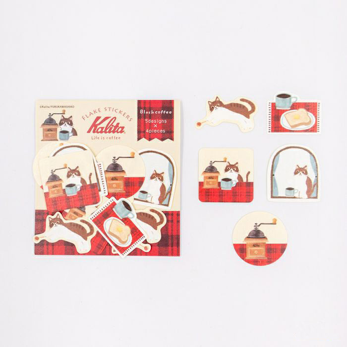 Furukawashiko Flake Stickers - Kalita Black Coffee & Cat x 1