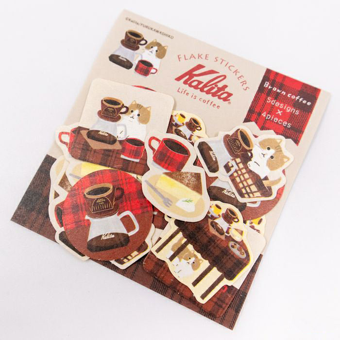 Furukawashiko Flake Stickers - Kalita Brown Coffee & Cat x 1